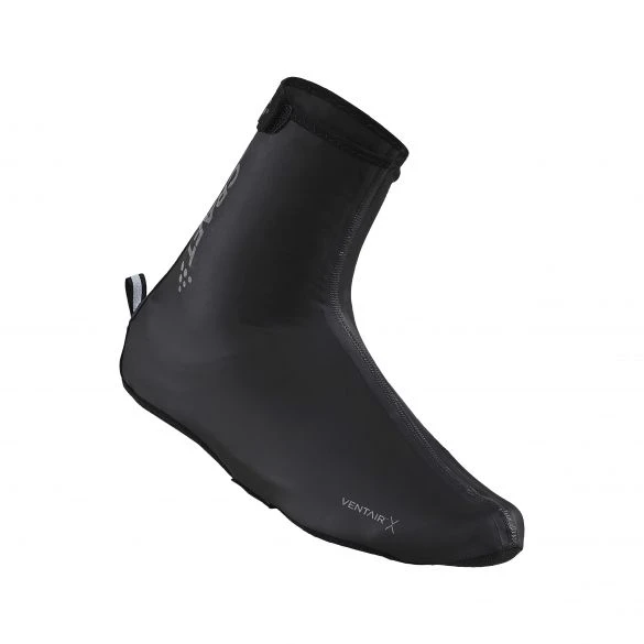 De schoenovertrek is gemaakt van elastische, wind- en waterdichte stoffen en is voorzien van verstevigingen bij hiel en neus.